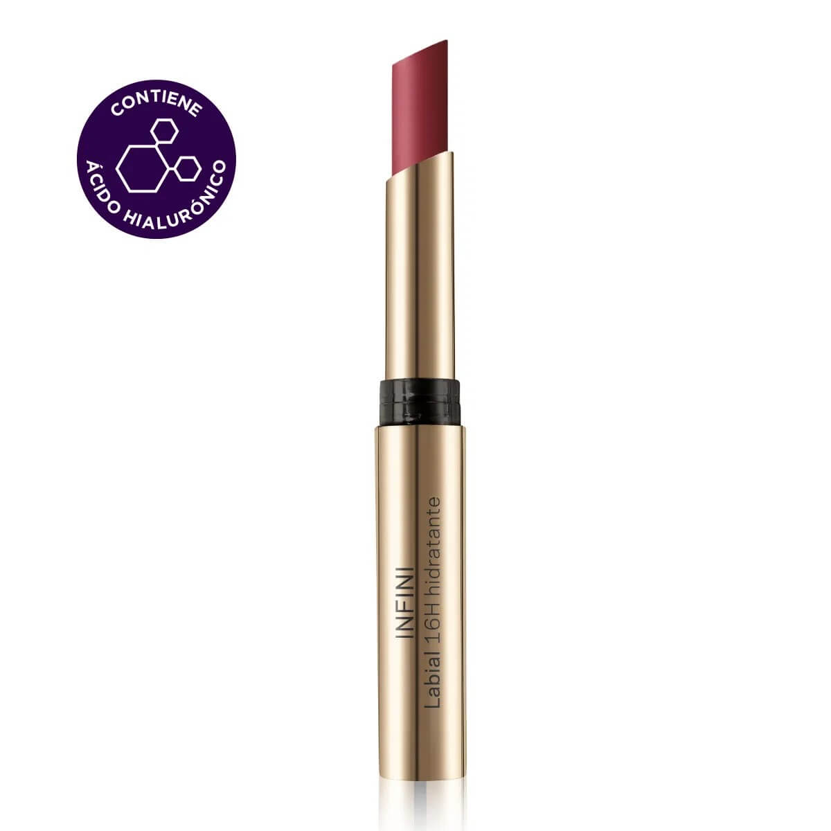 Lápiz labial de larga duración e hidratación hasta por 8 horas, para que el color y la hidratación te acompañen todo el día. Color roughe passion.